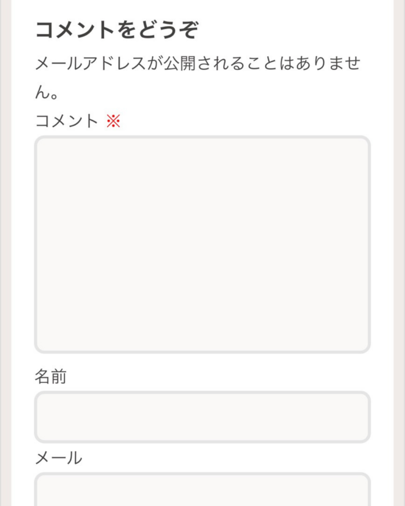 名前、メール、サイトは必須ではないので空欄でもOKです